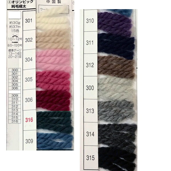 元廣定番の純毛極太ストレートヤーン [素材] ウール100% [長さ・単位] 30g/約37m [使用針]棒針10号〜12号 かぎ針8/0〜10/0 [標準ゲージ] 13〜14目/20〜21段 中国製メーカー希望小売価格はメーカーカタログに基づいて掲載しています。